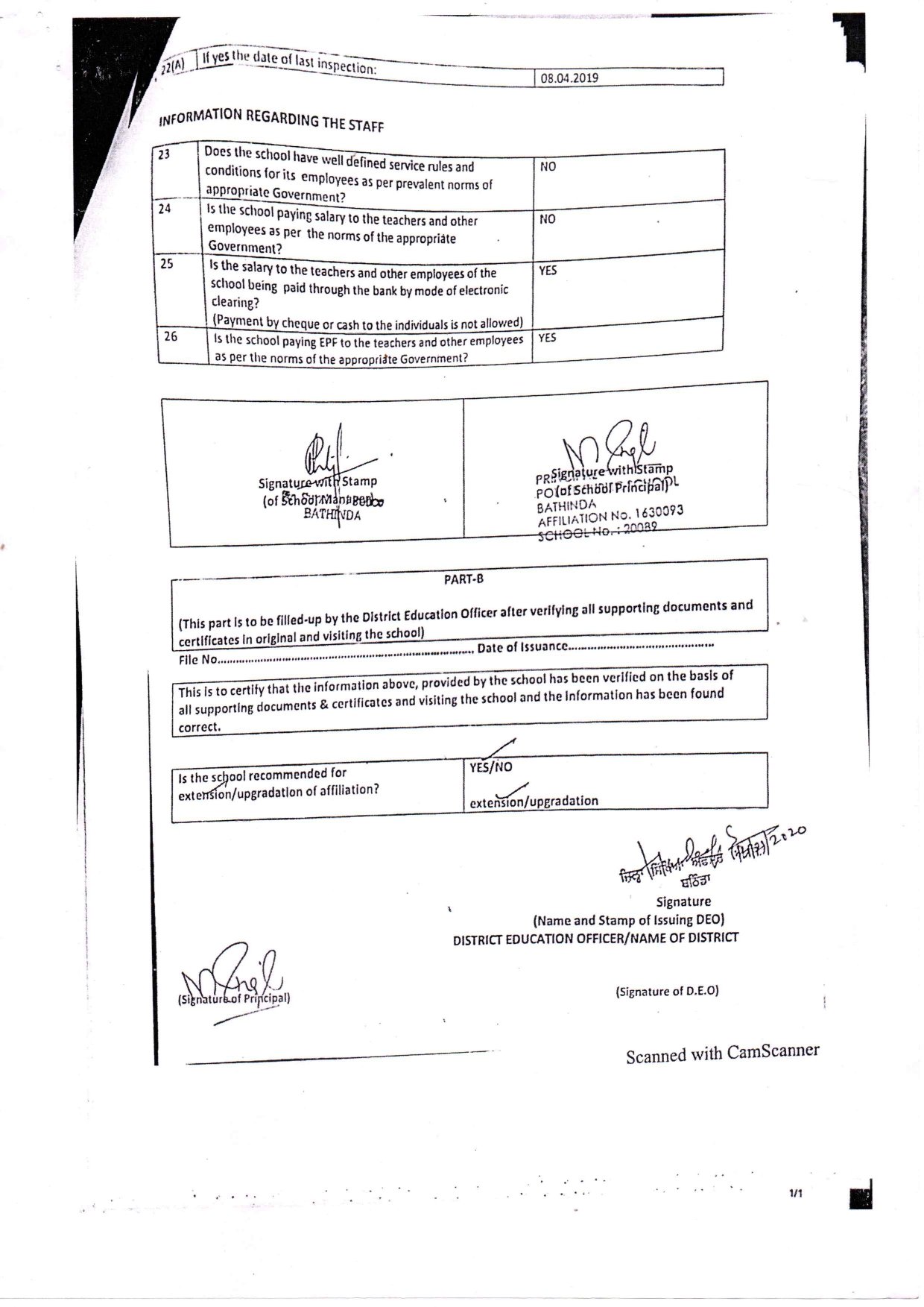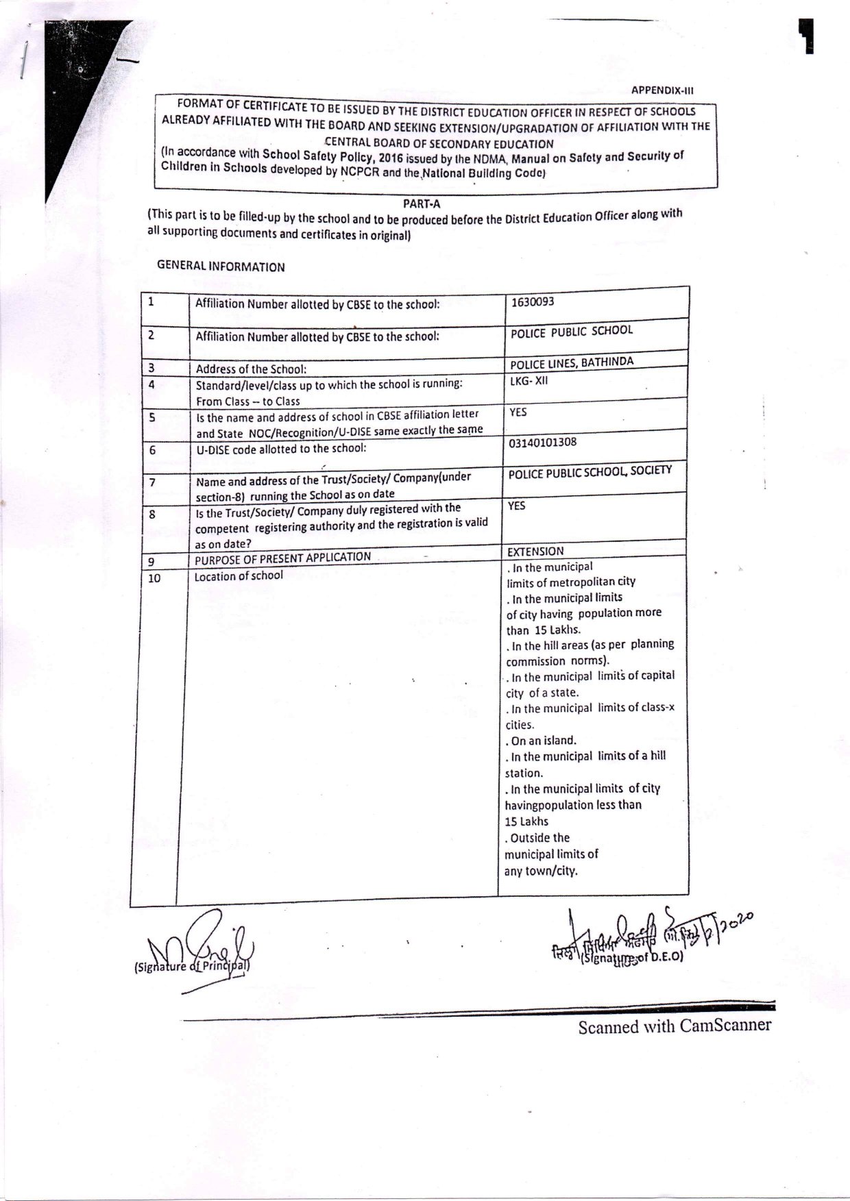 School Extended Affiliations Certificate